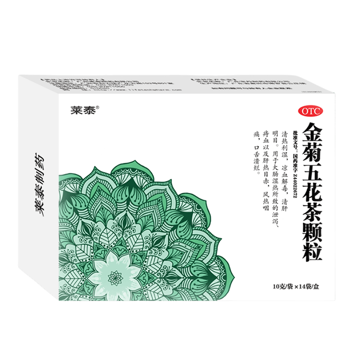 • 規格:10g*14袋/盒;萊泰金菊五花茶顆粒,由金銀花、槐花、野菊花、木棉花、葛花、甘草六味中藥精心配伍而成。這六味藥材各自具有獨特的藥理作用,共同...